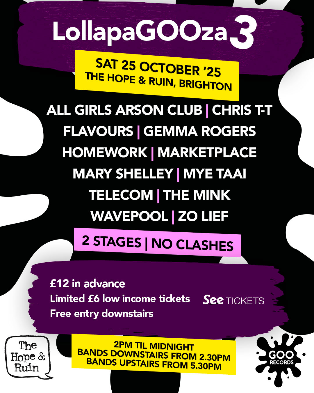 We're delighted to have 12 amazing bands playing for just £12 on October 25th 2025 at The Hope & Ruin in Brighton. We have bands from England, Scotland, Holland, France and the USA on a bill unlike any you'll see anywhere else this year.